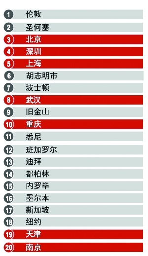 仲量联行2015年城市发展动力指数全球20强城市